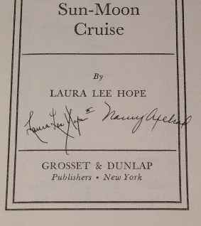 Harriet and Nancy had intended to gather information for a rewrite of The Mystery of the Brass-Bound Trunk in the Nancy Drew series. To achieve this, they went to the various educational seminars which were presented to children on the cruise. However, upon their return, the publisher Grosset & Dunlap decided that they wanted a new Bobbsey Twins volume. Harriet asked Nancy to write The Bobbsey Twins on the Sun-Moon Cruise which featured a mystery on a cruise ship to observe an eclipse.